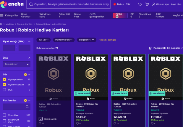 Ayrıca, oyununu bir üst seviyeye taşımak istiyorsan Robux edinmek, projelerini öne çıkaracak gelişmiş araçların ve varlıkların kilidini açabilir. Eneba gibi dijital pazar yerleri Robux için harika fırsatlar sunar; böylece oyun geçişlerine, avatar öğelerine veya premium geliştirme özelliklerine yatırım yaparken bütçeni zorlamazsın.