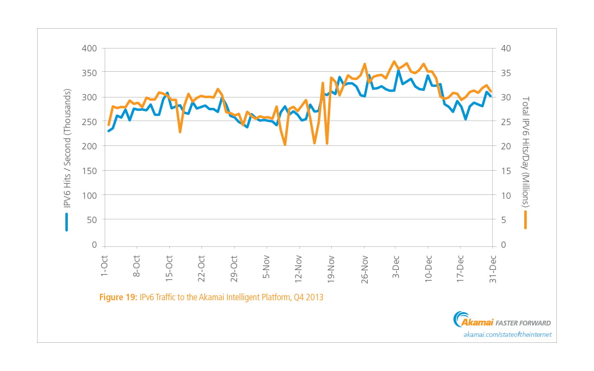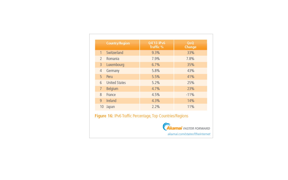 İlginç verilerden bir diğer ise 2013 yılında kullanılan küresel IP v4 sayısı 783milyona yaklaşmış durumda. Bunların 165milyonuABD merkezli. Şu anda dünyada IPv4 ile alakalı ciddi bir dar boğaz yaşanıyor ve IPv6‘ya geçiş sürecinin hızlandırılması için çalışmalara ağırlık verilmiş durumda.